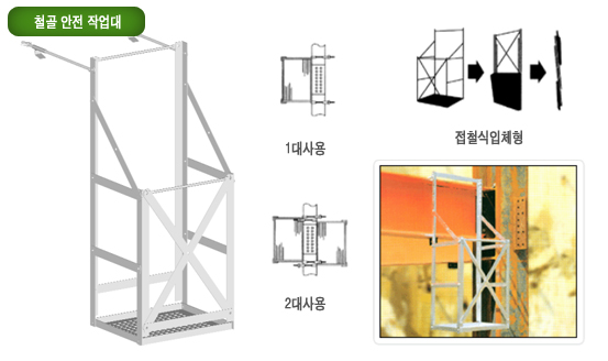 수평철골에 설치하여 철골의 볼트체결과 용접작업시 안전 작업대로 사용.